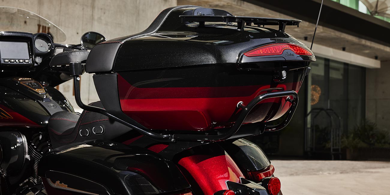 | 標準装備 | RIDE COMMAND® 搭載7インチディスプレイ、パワーウインドシールド、ドライビングライト、バックライト付きスイッチキューブ、ハイウェイバー、プレミアムステッチ入りH/Cシート、ヒートグリップ、調整式パッセンジャーフロアボード、36.2ガロン収納スペース、リモートロックハードサドルバッグ&トランク、選択可能なライドモード、リアシリンダー非作動化、ABS、クルーズコントロール、キーレスイグニッション、AM/FM、Bluetooth、USB、スマートフォン対応入力、ウェザーバンド付き600ワットオーディオシステム、12V充電ポート |